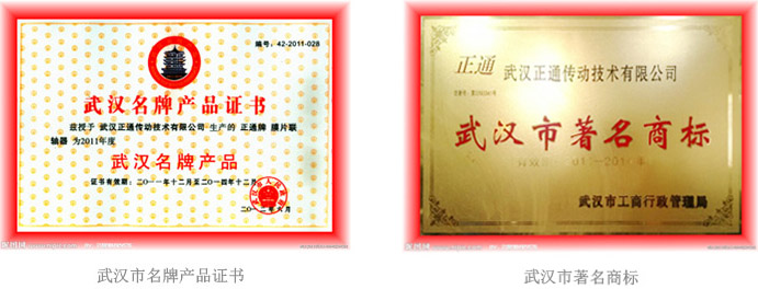 1999年武汉市守合同重信用企业 | 2011年“正通”牌联轴器获年度武汉市名牌产品 |